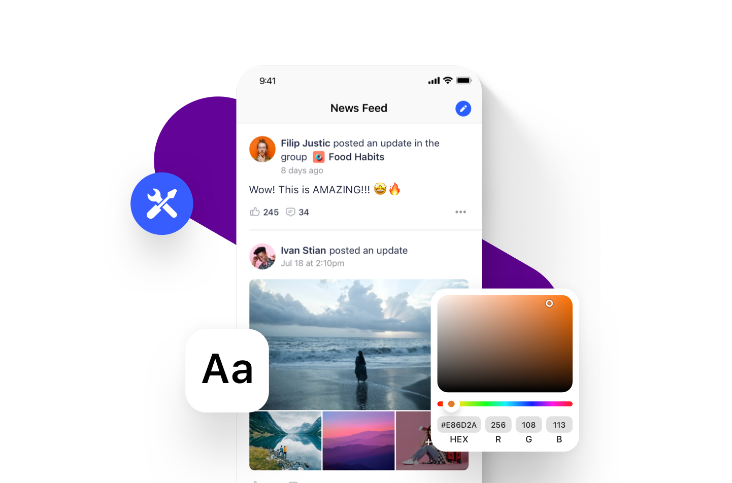Get a premium branded app with a custom app icon, login screen, splash screens, and backgrounds. The team adjusts everything from fonts, colors, and more to your brand’s guidelines.