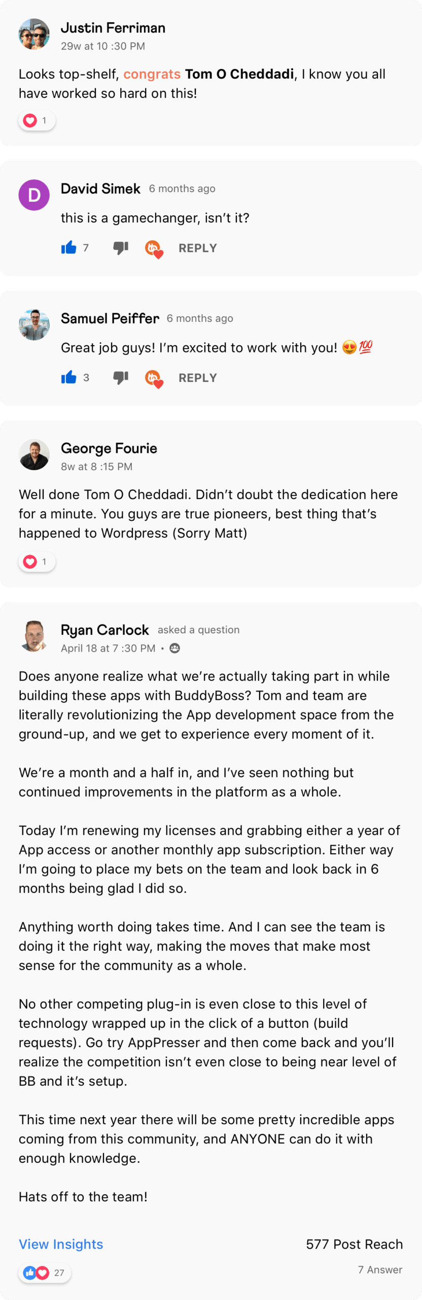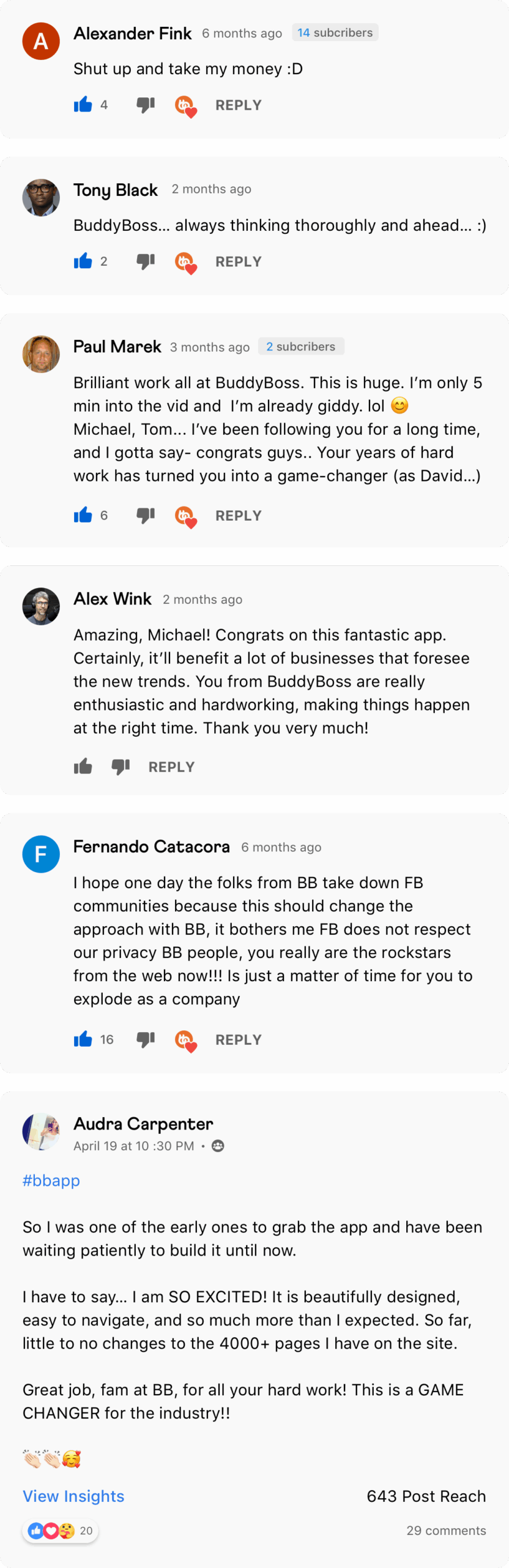 We’re committed to helping every customer experience the transformational power of BuddyBoss technology.